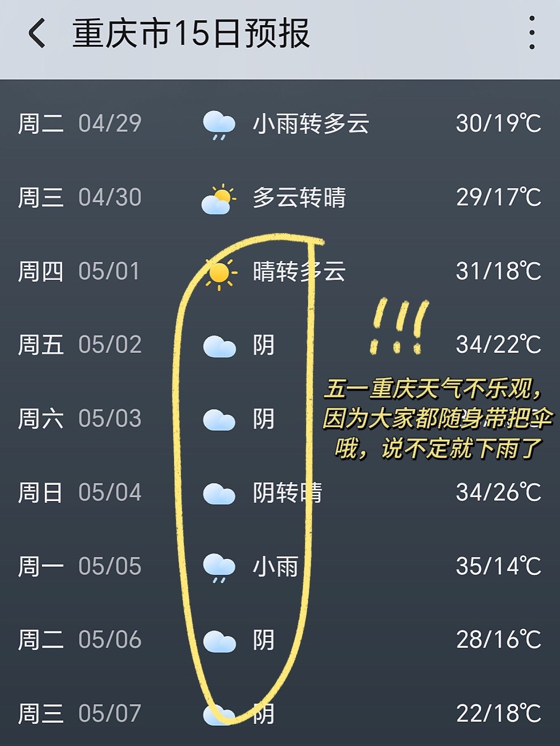 重庆天气预报十五天天气大全