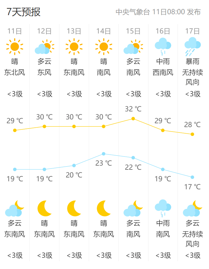 7、为你提供快速准确的南阳方城一周天气预报,未来5天的天气预报和气象趋势预测,主要指标包括每天最高气温最低气温天气状况风向等。