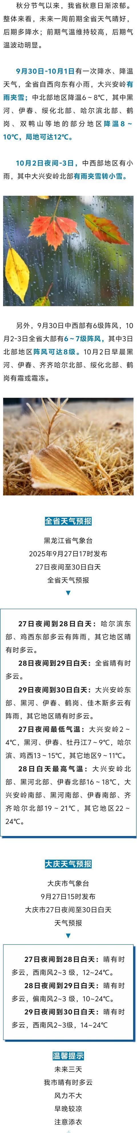 2024年8月,黑龙江没有下雪根据黑龙江省气象局发布的天气预报信息,2024年8月期间,黑龙江各地的天气状况主要是晴多云阵雨或雷阵雨,以及小到中雨,并未提及下雪的情况例如,8月23日的预报中提到,佳木斯东部双鸭山东部多云有阵雨或雷阵雨,而大兴安岭黑河齐齐哈尔大庆等地则有小雨,部分地区。