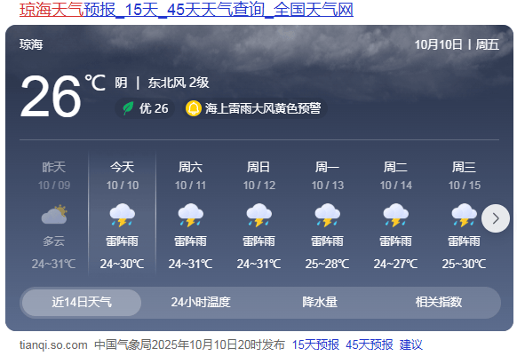 2、琼海天气网为您提供琼海天气预报24小时详情琼海今日天气预报,包括今日实时温度24小时降水概率湿度pm25风向紫外线强度等,助您放。