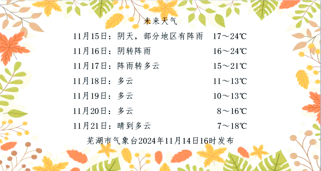 天气在线免费为您提供最新天气资讯芜湖未来一周天气查询,最新天气预报资讯信息等免费服务。